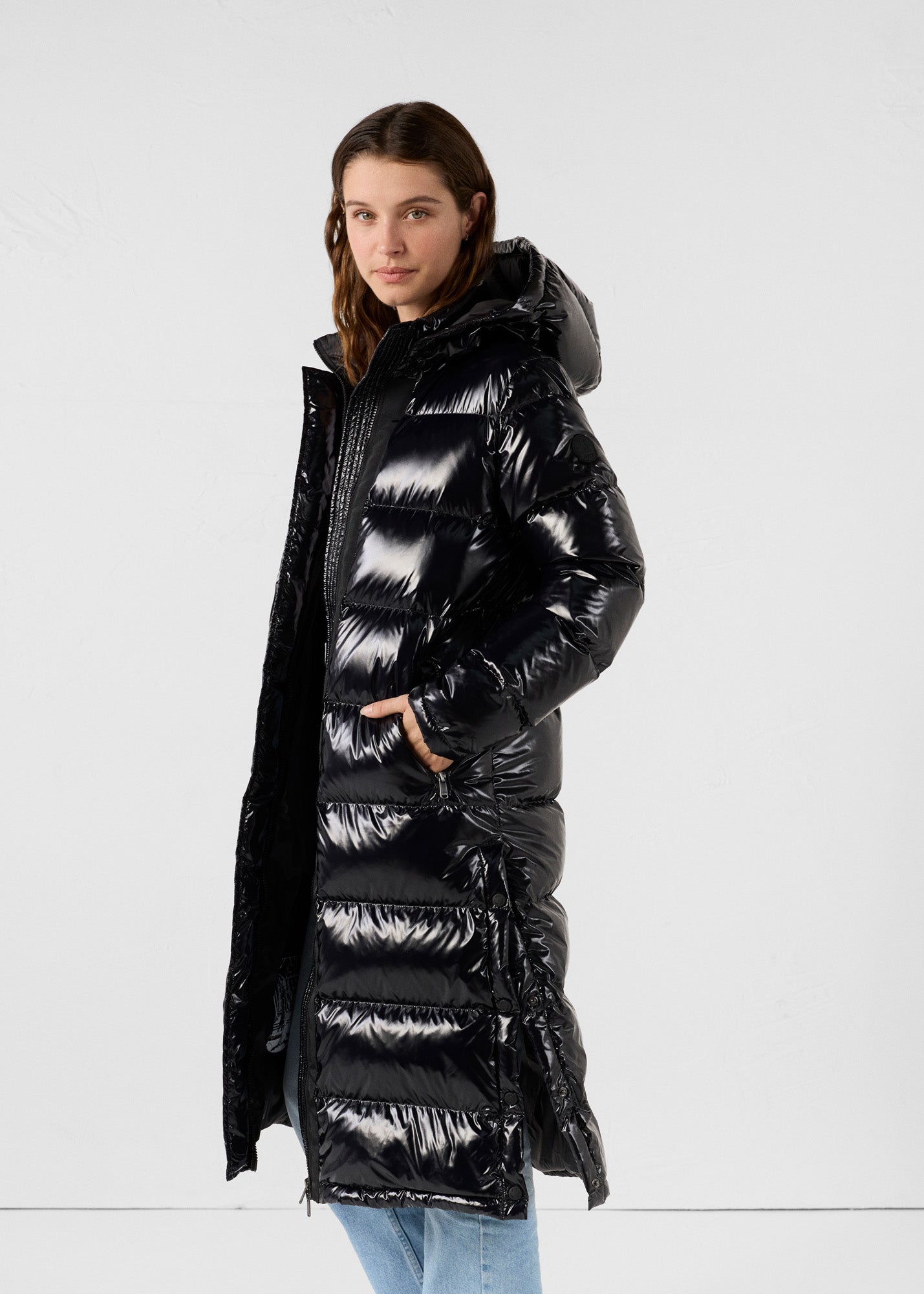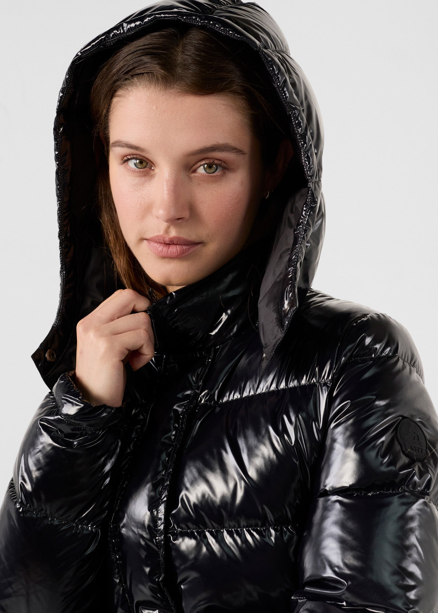 Doudoune longue laquée à capuche Grand Froid Noir Karachi